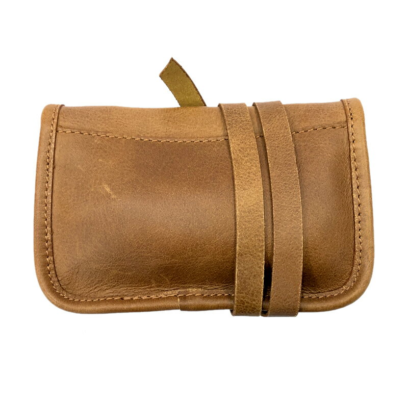 古き良き紙巻きたばこのケースをアレンジした レザーシガレットポーチ あえての紐巻きでヴィンテージ感のある雰囲気です ※参考画像 色違いのダークブラウン 本体、タバコ、クリーナーブラシが入ります 初めは少々膨らみますが使用するにつれ革が馴染むと 収まりよくなると思います